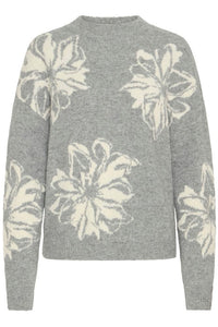 Byomea flower jumper 2, mid grey melange mix  - Forhandler