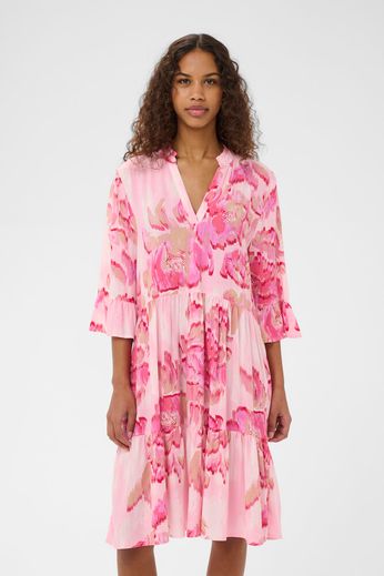 Fin lyserød kjole med abstrakt blomsterprint<3