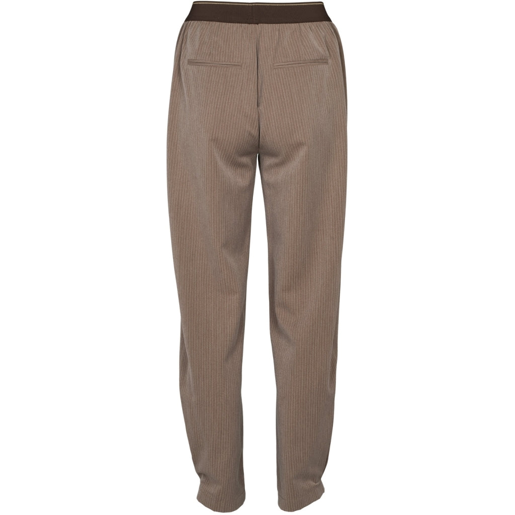 Violet Pants er et par afslappede og stilrene bukser med et elegant, nålestribet udtryk. De har en komfortabel pasform med elastisk linning. Bukserne er designet med diskrete sidelommer samt pyntelommer bagpå. Den mørkere kontraststribe langs ydersiden af benene giver et moderne og sporty element. Benene er lige med et let tilspidset fald.